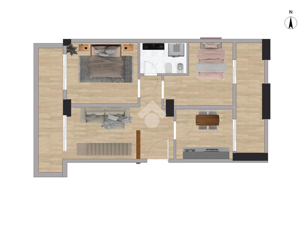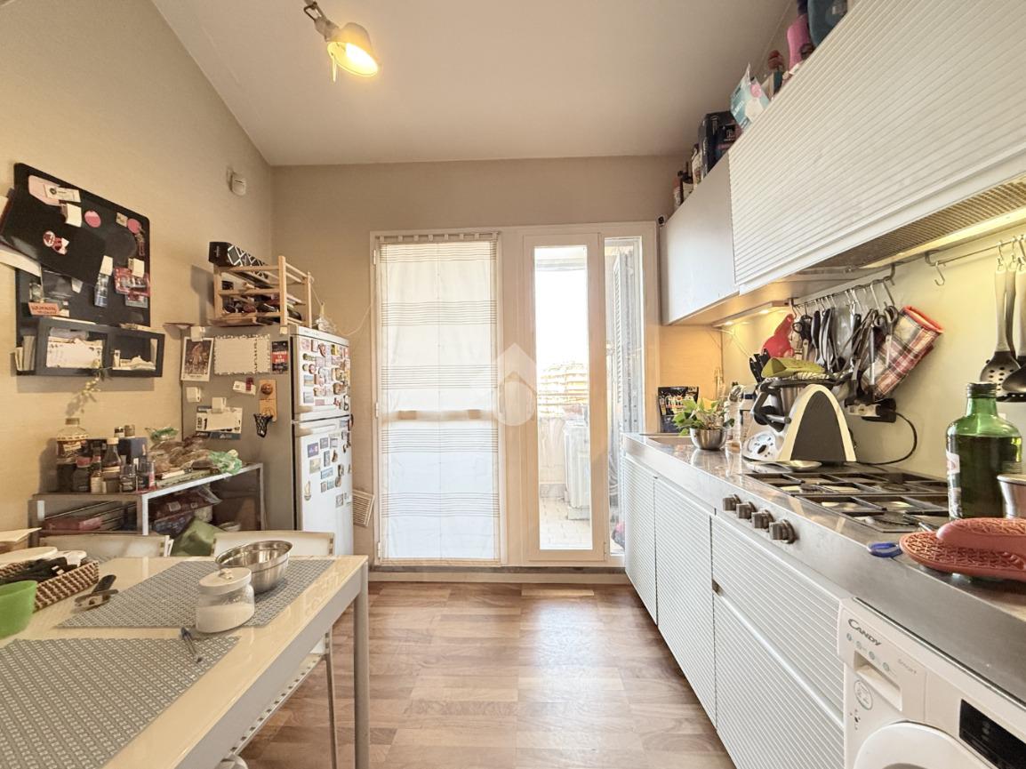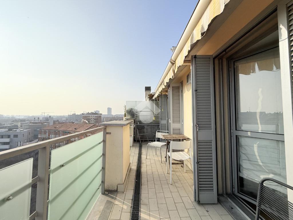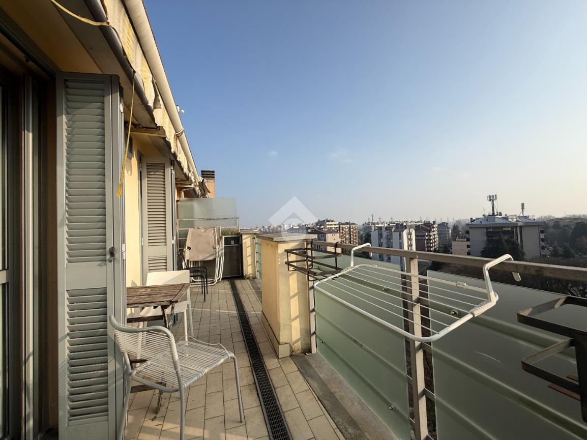 Il terrazzo, vero valore aggiunto dell’immobile, offre una vista aperta e riservata, perfetta per momenti di relax o convivialità all’aperto.