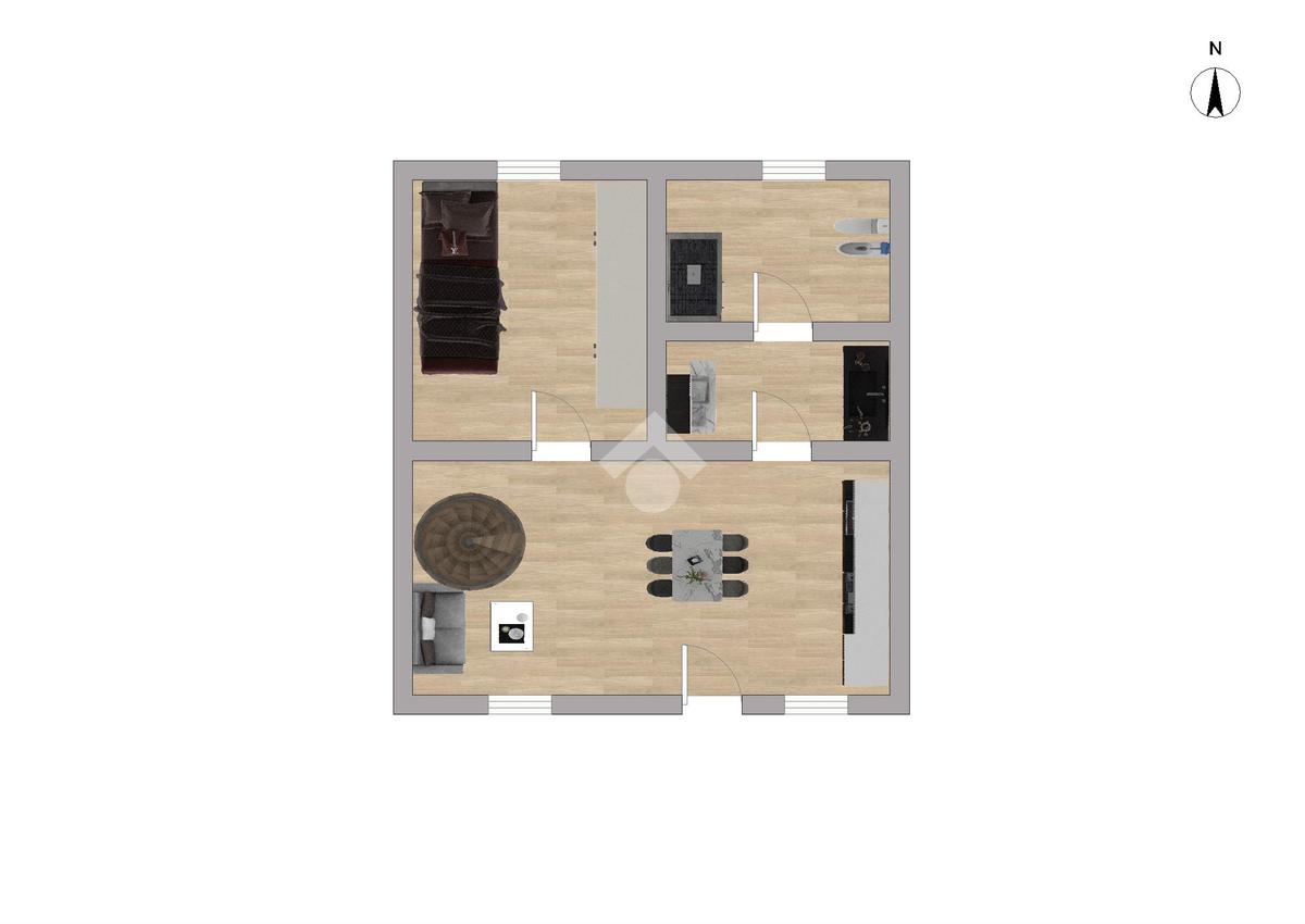 L’immobile si apre su una luminosa zona giorno con cucina a vista, ideale per la vita quotidiana e per momenti di convivialità. Sullo stesso livello troviamo una camera singola e un bagno finestrato, comodo e ben aerato.